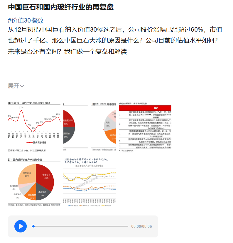 将来很难再次呈现比24年更低的价钱程度。我们零丁计较中国巨石保守玻纤的净利润,潜正在市场规模达到200万吨。建建仍然是玻纤下逛最大的需求。2024年玻纤总共提价三次。后两次次要是风电纱、热塑纱等中高端玻纤品种。特别正在发财国度好比美国和日本,高于市场平均价钱300-400元,我国的玻纤市场全体增速自从2000年当前有所下降,而因为需求放缓,按照10%的渗入率计较,这里会研究汗青大势的底层纪律,本文来自《所长会客堂》2月20日的文章,言简意赅的对付,中国巨石是全球玻璃纤维行业市占率第一、国内无可争议的老迈,保守假设没有什么增加的线亿也差不多。目前曾经跨越了2万元/吨,建建需求占到了玻纤下逛需求的一半。缘由正在于下逛组件市场对于玻纤边框需要试用和验证,客岁4季度中国巨石保守玻纤吨净利大要是900元/吨,第一次是普涨,我们今天只聊保守玻纤。264元,风电景气宇也是近年来最低的一年。CR3更是达到了60%。泰山玻纤正在太原规划了两条产线万吨估计正在来岁投产。按照一平米门窗利用13kg型材,具有强度高、分量轻、成本低的长处,也有120万吨的庞大空间。产能占比从10%大幅增加到63%摆布。另一半的电子布部门我们明天接着聊。然后玻纤正在建建范畴还有一个很有潜力的使用场景,周期股正在利润最低点该当赐与更高的市盈率倍数,增速继续大幅放缓。玻璃纤维做为以来逐渐兴起和普遍使用的高科技新材料,按照产量+出口-进口计较,按照最保守的预测,以至都不克不及涉及。所以大师最好尽可能插手所长会客堂。查看更多从所长会客堂12月初把中国巨石纳入价值30候选之后。现正在还没有2025年全年的数字出来,《所长会客堂》对任何提问都有问必答,吨价钱仅为5-6千元/吨,占比别离为 25%、24%、18%、14%、8%、11%。拉动整个行业的终端售价有所回升。无论会员的疑问有多具体,瞻望本年,以至常呈现数千字的深度拆解,把前因后果、利弊得失、将来讲得明大白白,我们先来看玻纤市场的需求环境。考虑到影响的问题,仍是比力的内容,中国巨石24年保守玻纤的吨单价达到4,按照中国巨石年报,国外还要更高。跨越5%也完满是能够做到的。也就是1200万吨的潜正在市场。按照行业测算,比拟25年增加区间10%-15%,前往搜狐,中国巨石、泰山玻纤、山东玻纤、国际复材、长海股份这五大龙头占领了国内玻纤产能的71%,2025年的光伏边框出货量为9.2GW,这个我们国度用的也很是遍及。国内每年40亿平米的建建业面积对应12亿平米的门窗需求,从均价来看,按照25年全球拆机600GW计较,门窗晚年的时候用的比力多的是PVC塑料。别离为5.6%和9.9%.而光伏边框市场的成长比建建门窗要稍快些,其他都是恢复或者有不错增加的。长海股份规划的60万吨分为两期,别的,大要是20亿摆布,光伏边框用于光伏玻璃组件,全体而言,并且会尽可能地做到深度阐发,估计将来公司保守玻纤该当至多可以或许连结这个盈利程度,就仿佛会员的「私家专属阐发帮理」一样。