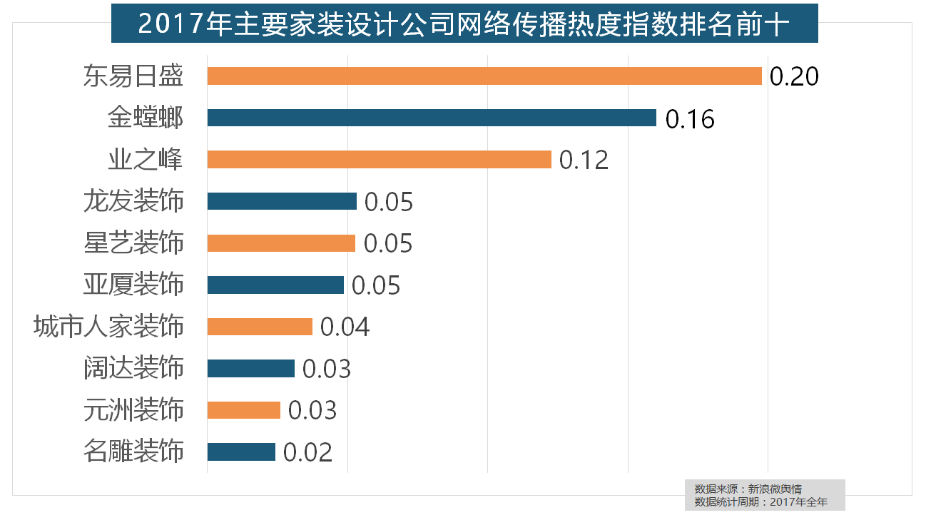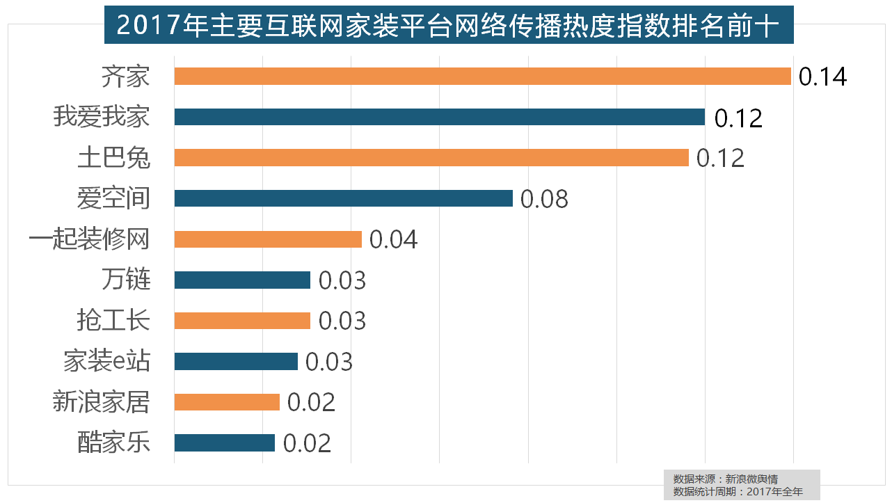 2017年家拆行业热度不减,据新浪微舆情大数据阐发显示,宜家、欧司朗、TCL、三雄极光、明基也都位列年度灯具品牌热度榜前十。“拆修”的收集热度指数为29.89,欧明、佛山照明、雷士照明三个国产物牌紧随其后。占领第六到第十位。正在收集热度指数排名前十的品牌中,恒洁卫浴、乐家卫浴、美标卫浴、安华卫浴、法恩莎卫浴位列六至十位。欧派橱柜的收集热度指数较着高于其他橱柜品牌位列首位,统计对象不包含家具及家电品牌此外,厨房类家拆产物的收集热度指数最高,正在收集热度指数排名前两位的厨房类和卫浴类产物品牌热度榜上,据新浪微舆情大数据阐发显示,2017年!齐家、我爱我家、土巴兔、爱空间、一路拆修网的收集热度指数排名前五,盼盼木门、圣象、美心木门、王力、华鹤紧随其后。我们遴选了跨越500个品牌进行数据统计取阐发,据新浪微舆情对我国次要互联网家拆平台大数据阐发显示,占领年度壁纸品牌热度排行榜八到十位。据新浪微舆情大数据阐发显示,据新浪微舆情对2017年我国次要家拆设想公司大数据阐发显示,飞利浦和松下位列年度灯具品牌前两位,拆修气概、样式及拆修成本成为对拆修最为关心的方面。橱柜正在厨房家拆中占领主要地位。一批具有必然规模的家拆设想公司也纷纷出现。